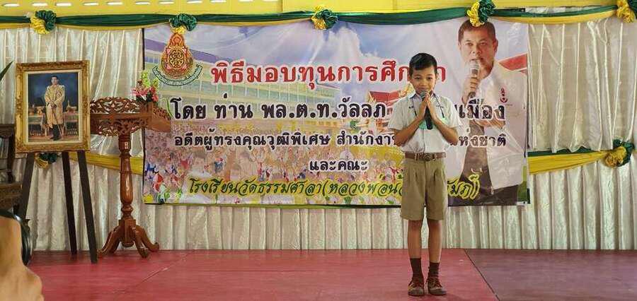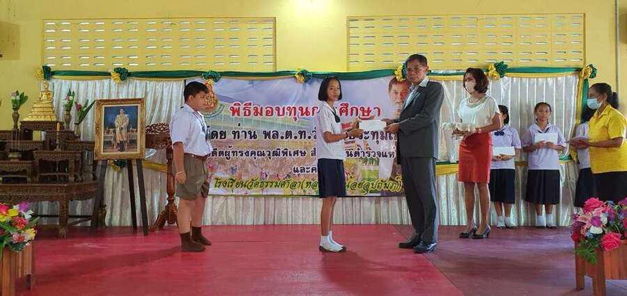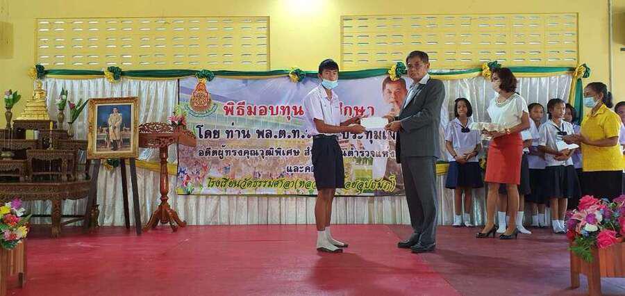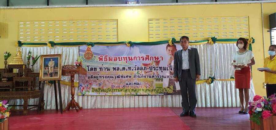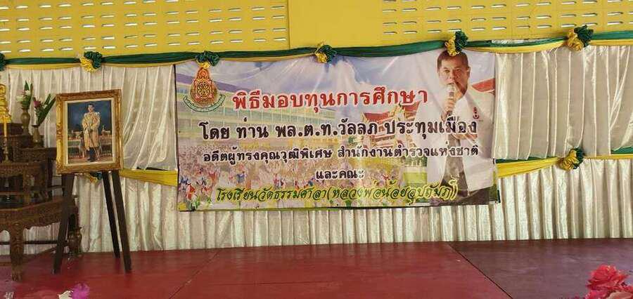 พิธีมอบทุนการศึกษา โดยท่าน พล.ต.ท.วัลลภ ประทุมเมือง อดีตผู้ทรงคุณวุฒิพิเศษ สำนักงานตำรวจแห่งชาติ S:0