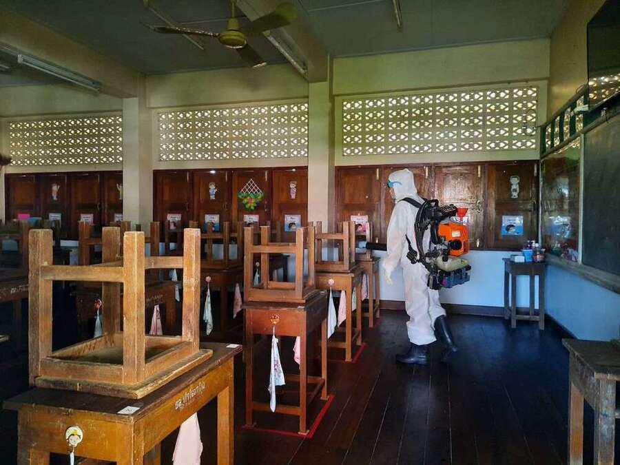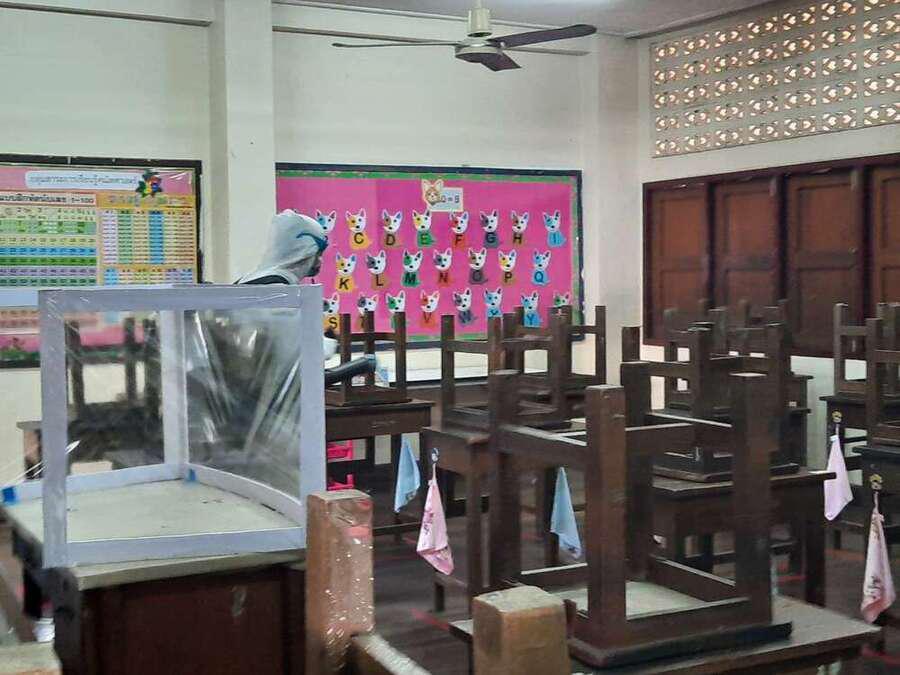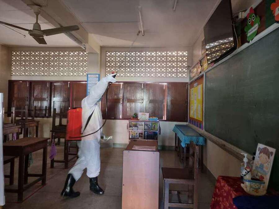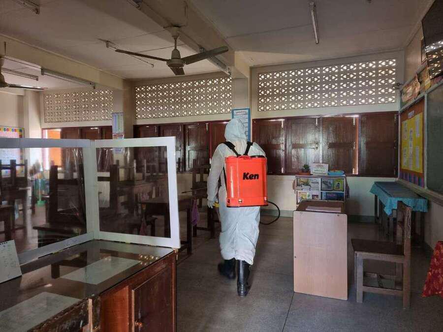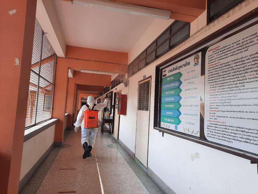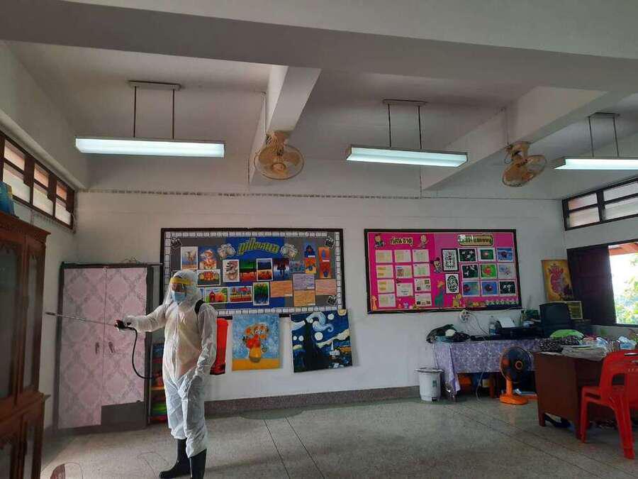 พ่นยาฆ่าเชื้อไวรัส Covid 19 เตรียมพร้อมเปิดเรียนในวันที่ 1 ธ.ค. 64 S:0