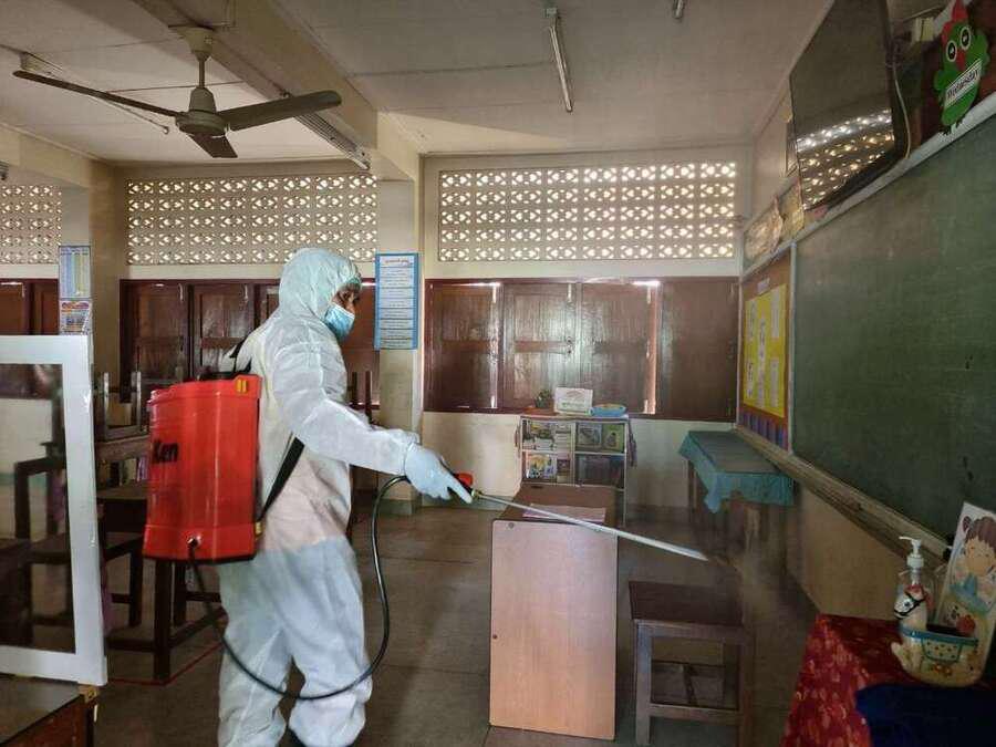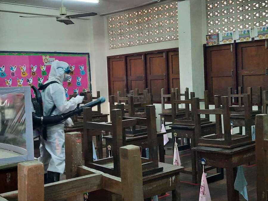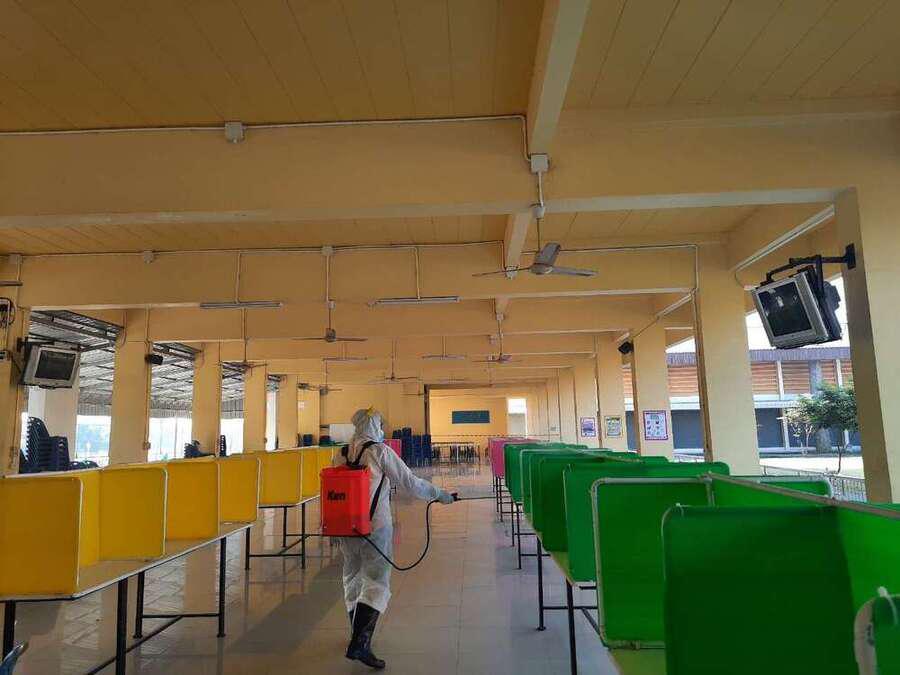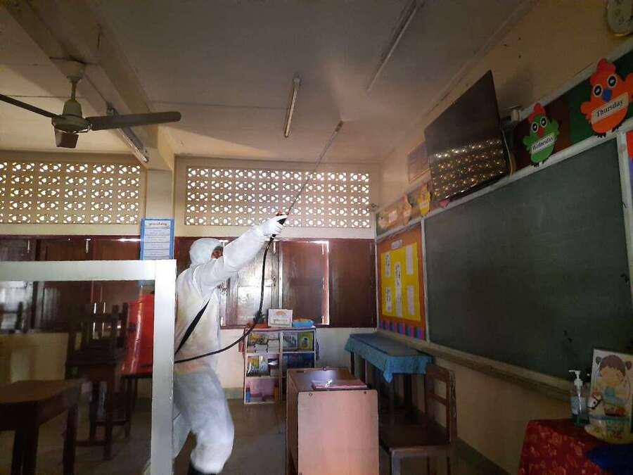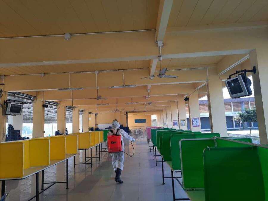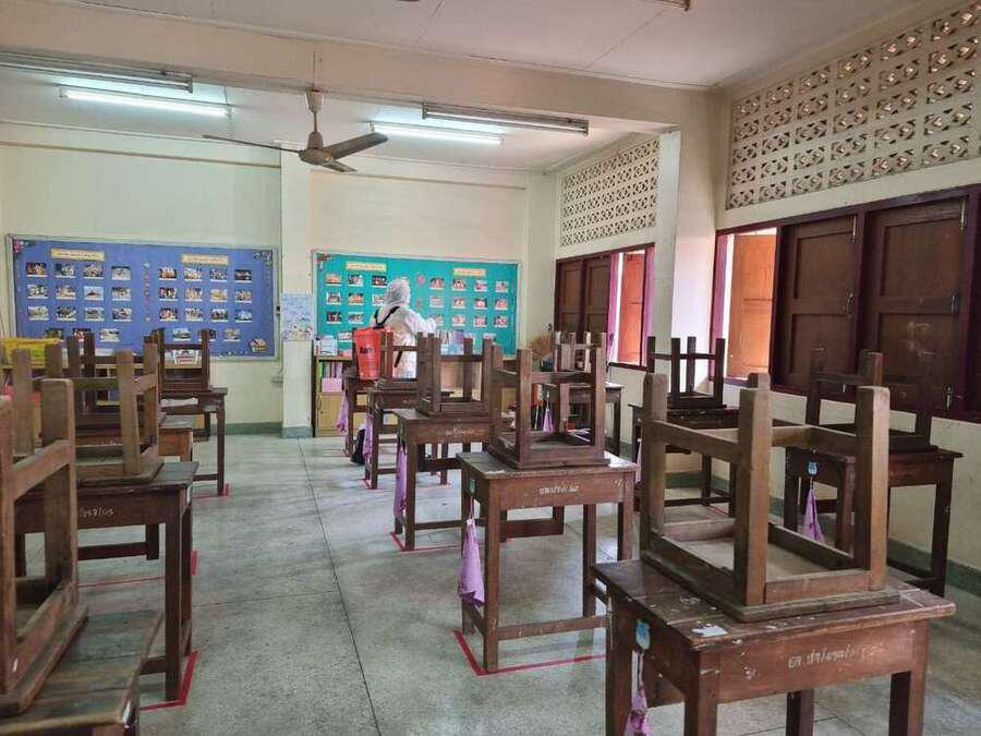 พ่นยาฆ่าเชื้อไวรัส Covid 19 เตรียมพร้อมเปิดเรียนในวันที่ 1 ธ.ค. 64 S:0