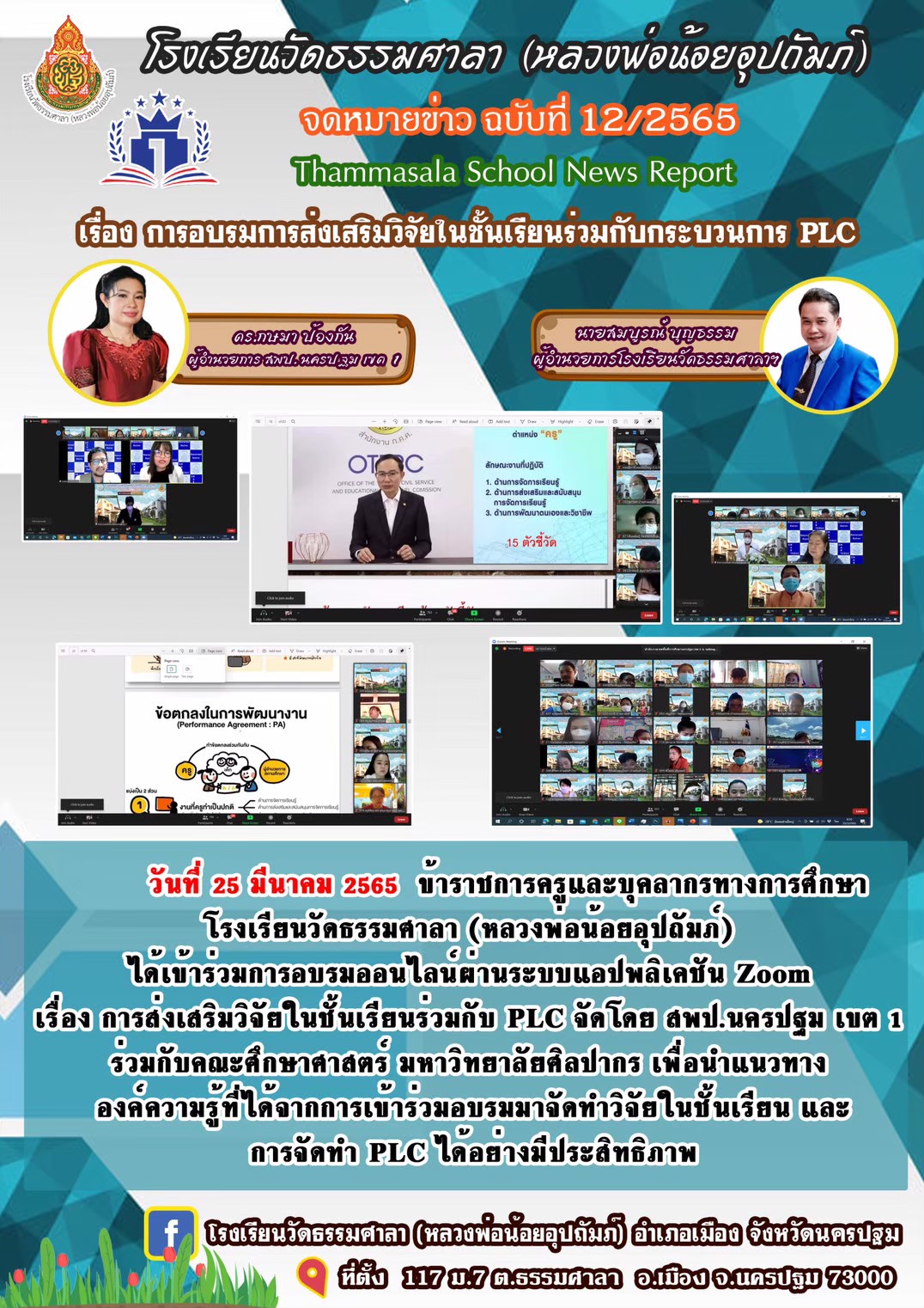 จดหมายข่าว ประชาสัมพันธ์ โรงเรียนวัดธรรมศาลา(หลวงพ่อน้อยอุปถัมภ์) เรื่องการอบรมส่งเสริมวิจัยในชั้นเรียนร่วมกับกระบวนการ PLC