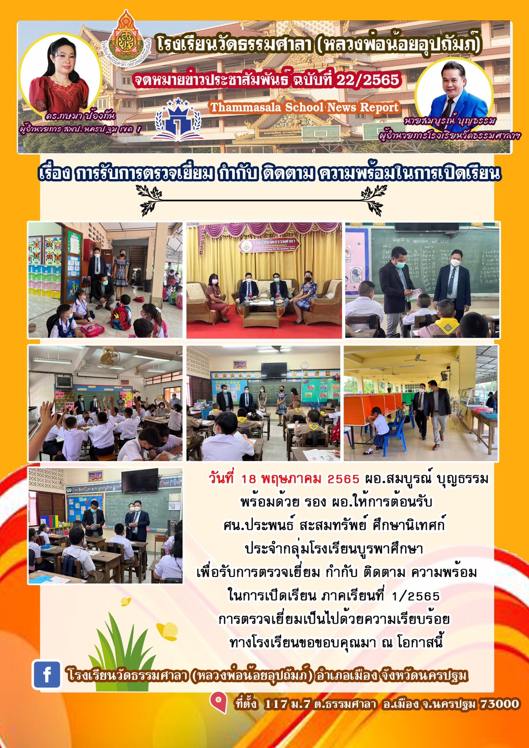 จดหมายข่าว ประชาสัมพันธ์ โรงเรียนวัดธรรมศาลา(หลวงพ่อน้อยอุปถัมภ์)เรื่องการรับการตรวจเยี่ยม กำกับ ติดตาม ความพร้อมในการเปิดภาคเรียนที่ 1/2565