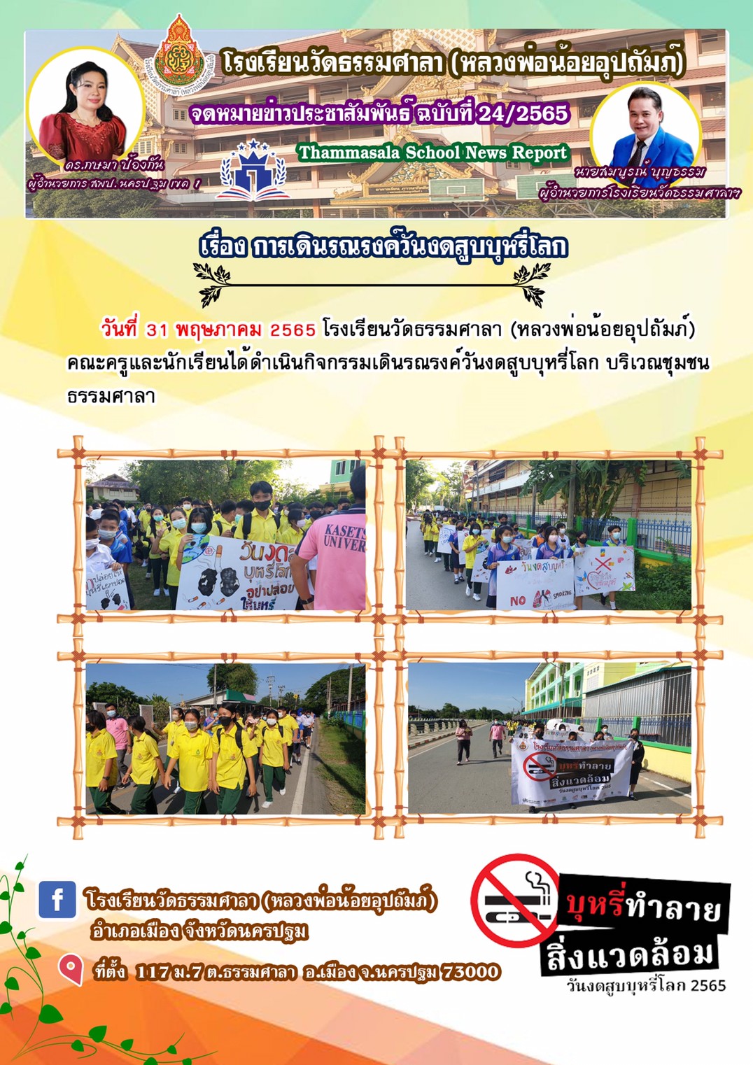 จดหมายข่าว ประชาสัมพันธ์ โรงเรียนวัดธรรมศาลา(หลวงพ่อน้อยอุปถัมภ์)เดินรณรงค์วันงดสูบบุหรี่โลก