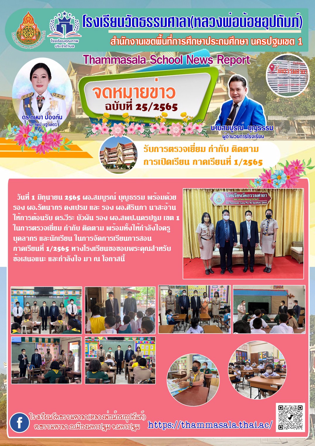 จดหมายข่าว ประชาสัมพันธ์ โรงเรียนวัดธรรมศาลา(หลวงพ่อน้อยอุปถัมภ์)นำโดย ผอ.สมบูรณ์ บุญธรรม ให้การต้อนรับ ดร.วีระ บัวผัน รอง ผอ.สพป.นฐ. เขต 1 ในการมาตรวจเยี่ยมโรงเรียนเปิดภาคเรียนที่ 1/2565