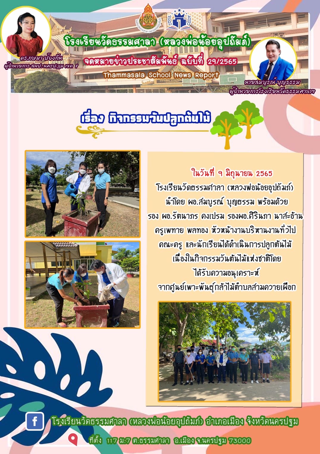 ข่าวประชาสัมพันธ์ โรงเรียนวัดธรรมศาลา(หลวงพ่อน้อยอุปถัมภ์) ผู้บริหารคณะครูและนักเรียน ร่วมกันปลูกต้นไม้ เนื่องในกิจกรรมวันปลูกต้นไม้แห่งชาติ