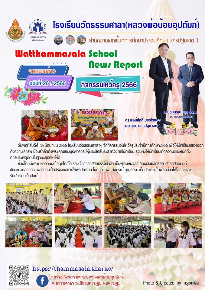 จดหมายข่าว ประชาสัมพันธ์ โรงเรียนวัดธรรมศาลา(หลวงพ่อน้อยอุปถัมภ์) เรื่องกิจกรรมวันไหว้ครู ประจำปีการศึกษา 2566