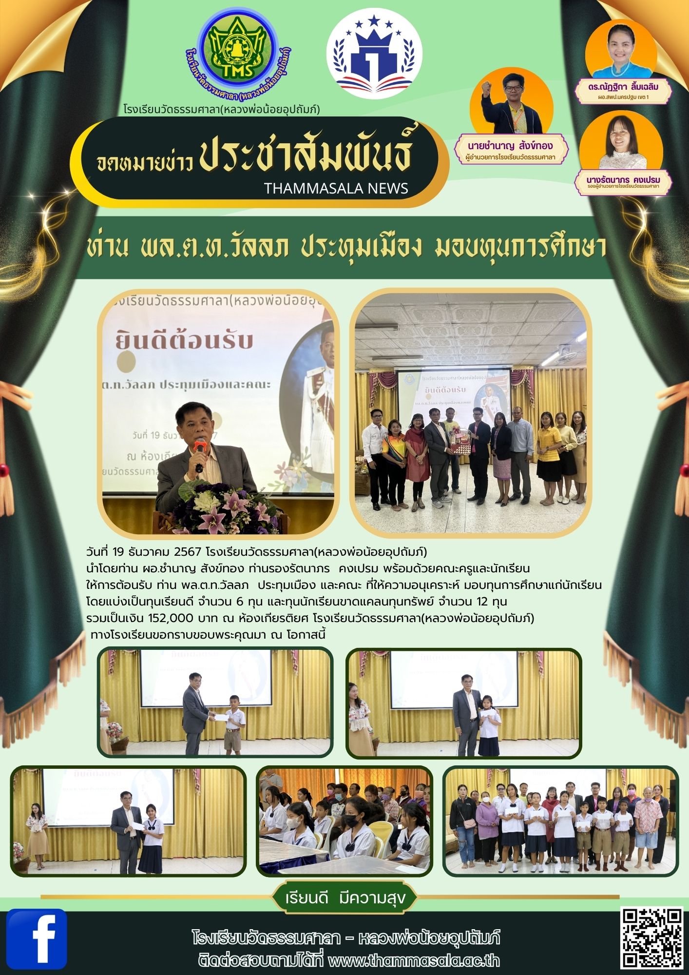 ประชาสัมพันธ์ โรงเรียนวัดธรรมศาลา(หลวงพ่อน้อยอุปถัมภ์) ท่านพล.ต.ท.วัลลภ ประทุมเมือง และคณะมอบทุนการศึกษา