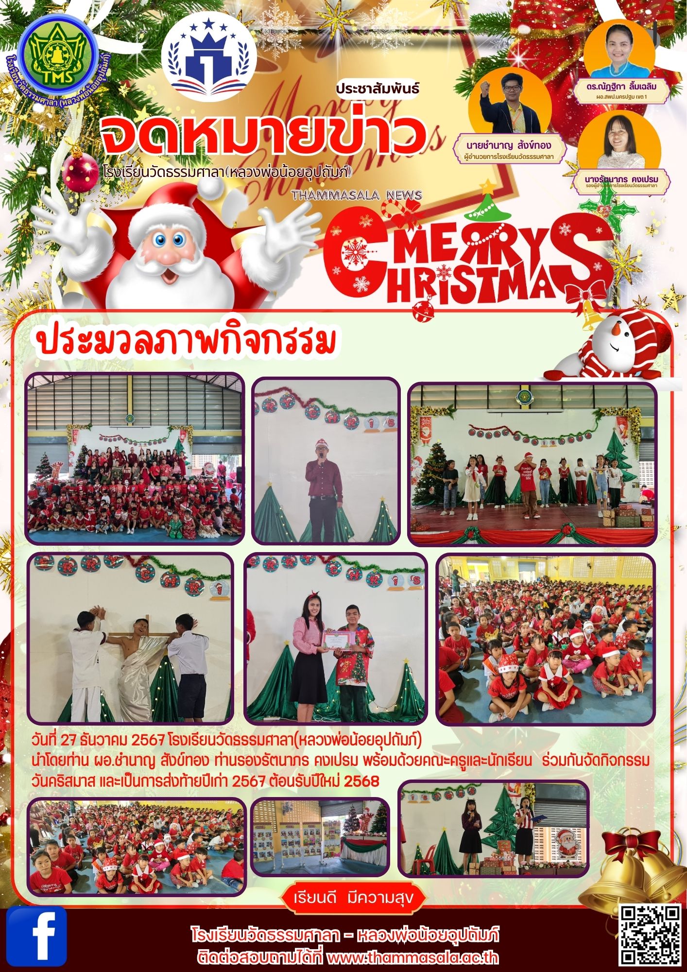 จดหมายข่าว ประชาสัมพันธ์ วันที่ 27 ธันวาคม 2567 โรงเรียนวัดธรรมศาลา(หลวงพ่อน้อยอุปถัมภ์)นำโดยท่าน ผอ.ชำนาญ สังข์ทอง รองรัตนาภร คงเปรมพร้อมด้วยคณะครูและนักเรียนร่วมกันจัดกิจกรรมวันคริสมาส และกิจกรรมส่