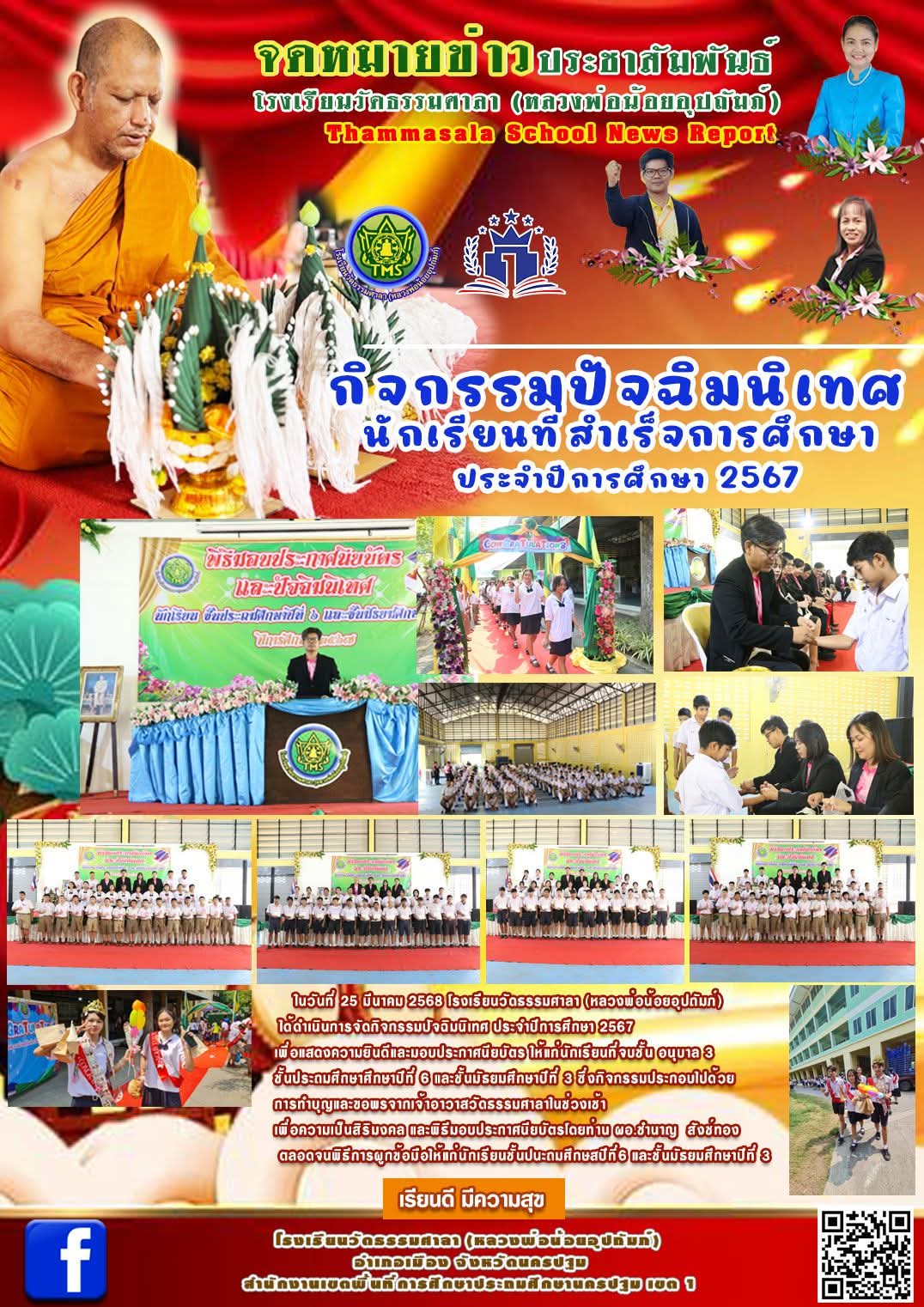 วันที่ 25 มีนาคม 2568 นำโดยท่าน ผอ.ชำนาญ สังข์ทองพร้อมด้วย รอง ผอ.รัตนาภร คงเปรม คณะครูบุคลากร ได้จัดพิธีปัจฉิมนิเทศมอบวุฒิบัตรสำเร็จการศึกษาให้กับนักเรียน ในระดับชั้น อนุบาล3 ป.6 และ ม.3 ประจำปี