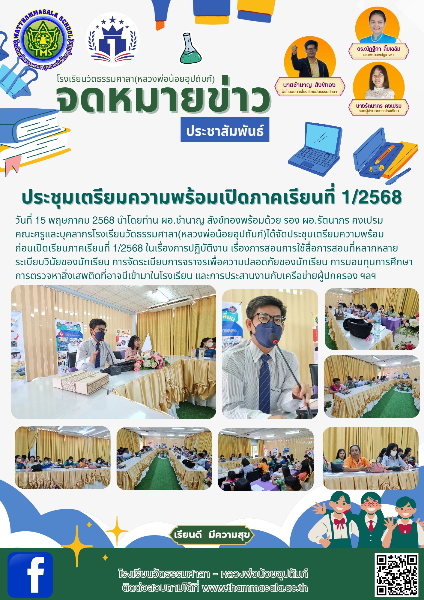 วันที่ 15 พฤษภาคม 2568 นำโดยท่าน ผอ.ชำนาญ สังข์ทองพร้อมด้วย รอง ผอ.รัตนาภร คงเปรม คณะครูและบุคลากรโรงเรียนวัดธรรมศาลา(หลวงพ่อน้อยอุปถัมภ์)ได้จัดประชุมเตรียมความพร้อม ก่อนเปิดเรียนภาคเรียนที่ 1/2568