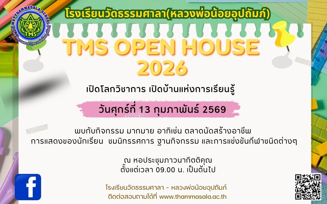 ประชาสัมพันธ์ กิจกรรมงาน OPEN HOUSE โรงเรียนวัดธรรมศาลา(หลวงพ่อน้อยอุปถัมภ์) วันศุกร์ที่ 13 กุมภาพันธ์ 2569