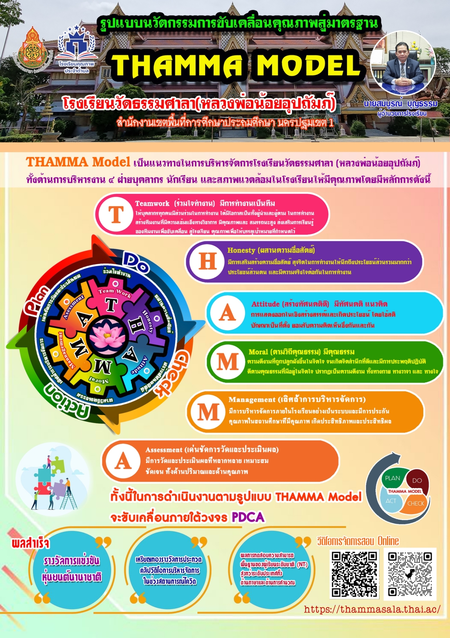 THAMMA MODEL รูปแบบนวัตกรรมการขับเคลื่อนคุณภาพสู่มาตรฐาน เป็นแนวทางในการบริหารจัดการโรงเรียนวัดธรรมศาลา(หลวงพ่อน้อยอุปถัมภ์)