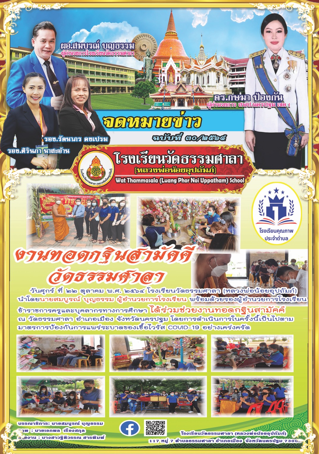 โรงเรียนวัดธรรมศาลา(หลวงพ่อน้อยอุปถัมภ์) ผู้บริหาร คณะครูและบุคลากร ร่วมงานทอดกฐินสามัคคีวัดธรรมศาลา
