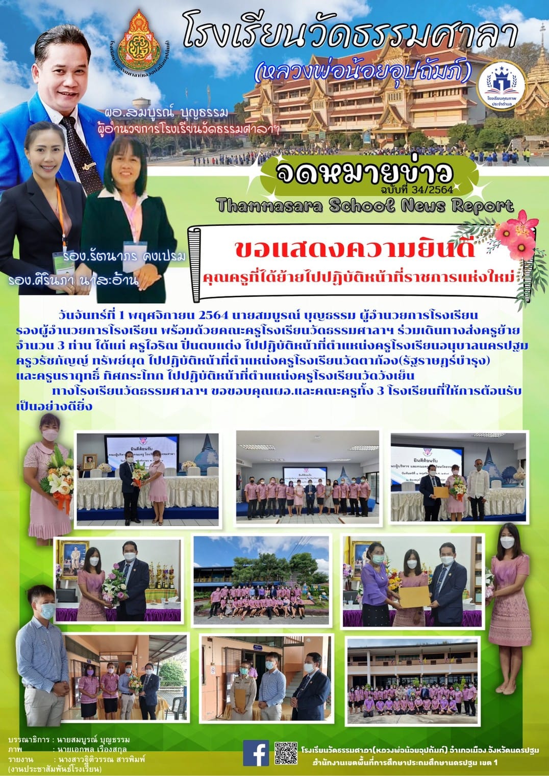 ข่าวประชาสัมพันธ์ ผู้บริหาร คณะครูและบุคลากร โรงเรียนวัดธรรมศาลา(หลวงพ่อน้อยอุปถัมภ์) ร่วมแสดงความยินดี แด่คุณครูทั้ง 3 ท่าน ที่ได้ย้ายไปปฏิบัติหน้าที่ราชการแห่งใหม่