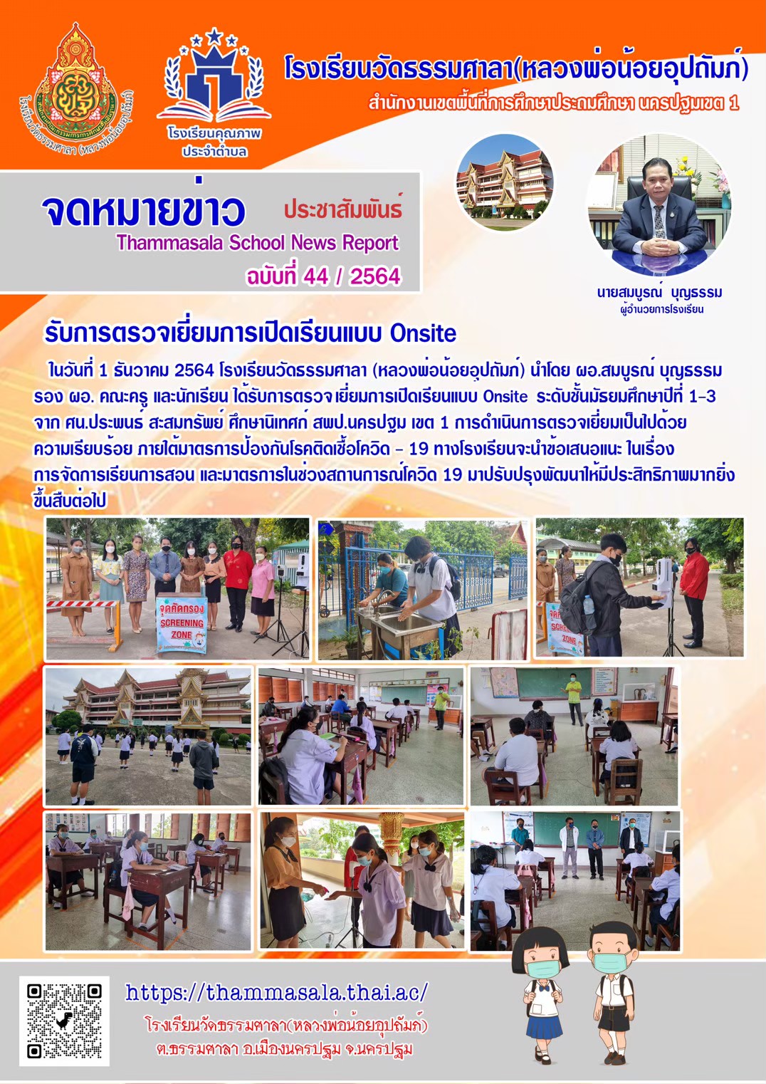 โรงเรียนวัดธรรมศาลา(หลวงพ่อน้อยอุปถัมภ์) นำโดย ผอ.สมบูรณ์ บุญธรรม รองผูอำนวย คณะครูบุคลากร และนักเรียน ได้รับการตรวจเยียมจาก ศน.ประพนธ์ สะสมทรัพย์ ในการเปิดเรียนแบบ Onsite